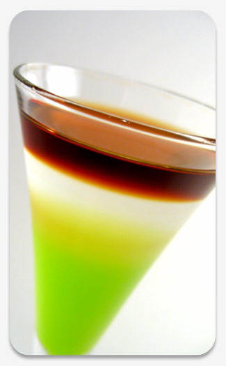 If snail porridge and sardine sorbet (a la Fat Duck) can be high culinary art, then certainly shots can. But when the height of the art is “wow, that tasted like Dr Pepper” or “good thing I drank that fast enough that the cream didn’t curdle”, not so much. So maybe not a shot, but what about a layered aperitif that changes and mixes flavors as the layers fall apart as the drinker consumes it? For crude example, I used to like the Poor Man’s Black Velvet because the Guinness would slowly give way to the sweetness of the cider. And some like the B-52 certainly look pretty.
